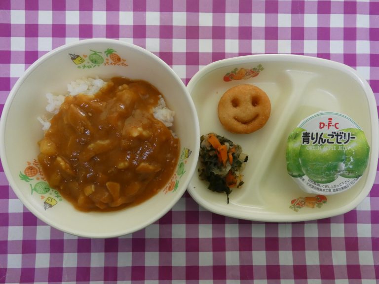 ・ごはん・カレーライス ・大根のポン酢サラダ ・スマイルポテト・青りんごゼリー