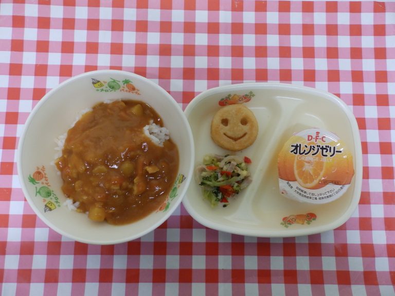 ・ごはん・カレーライス ・ブロッコリーサラダ ・オレンジゼリー・スマイルポテト