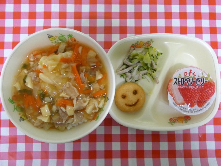 ・ごはん・中華丼 ・キャベツとハムのサラダ ・いちごゼリー・スマイルポテト